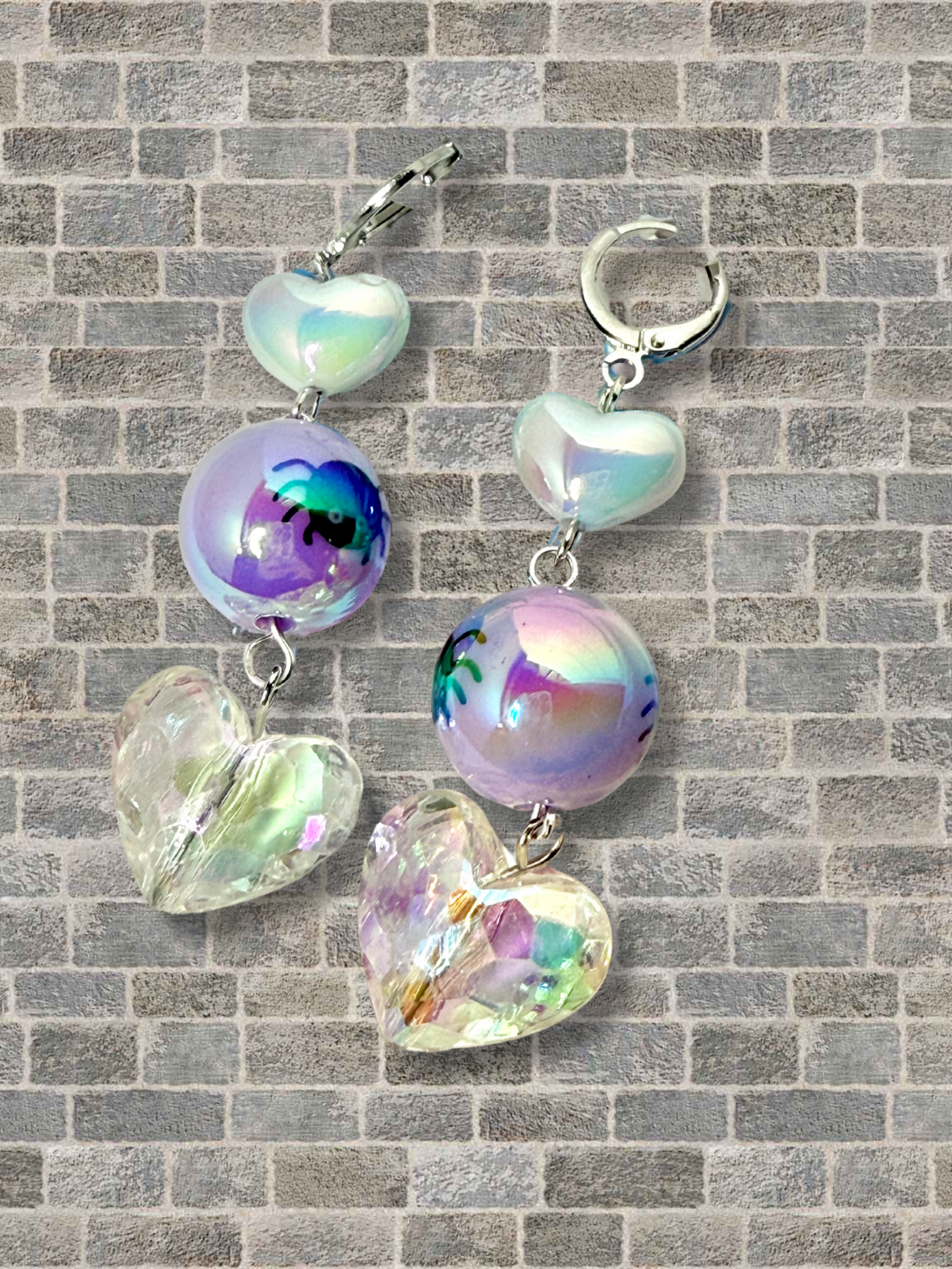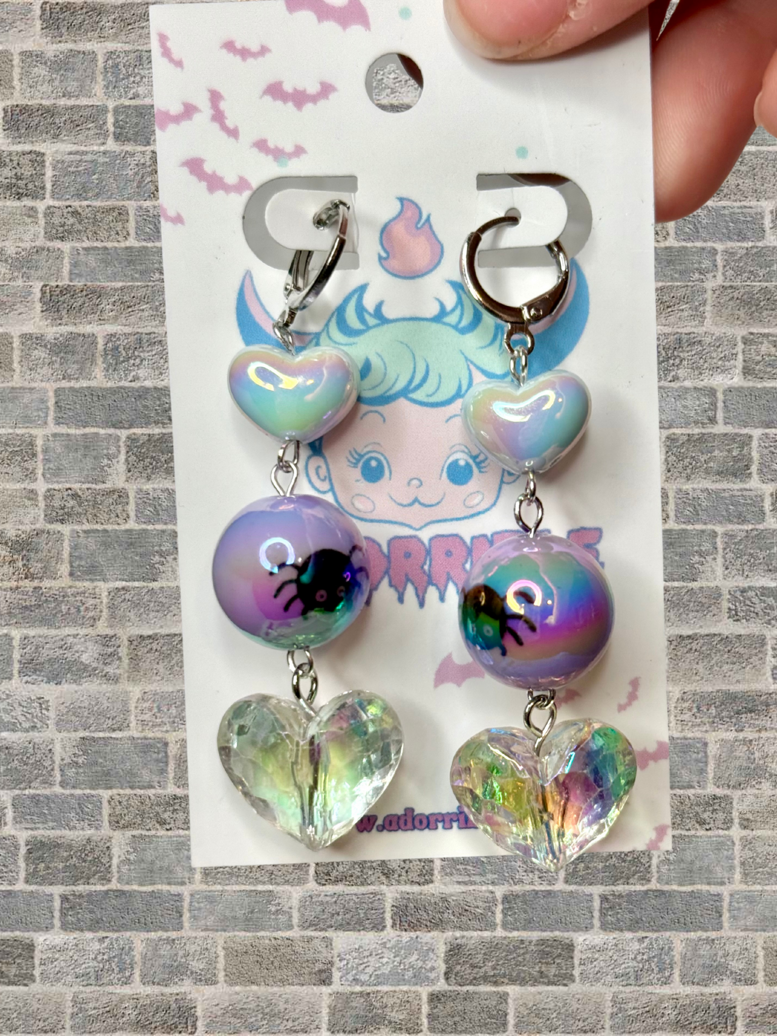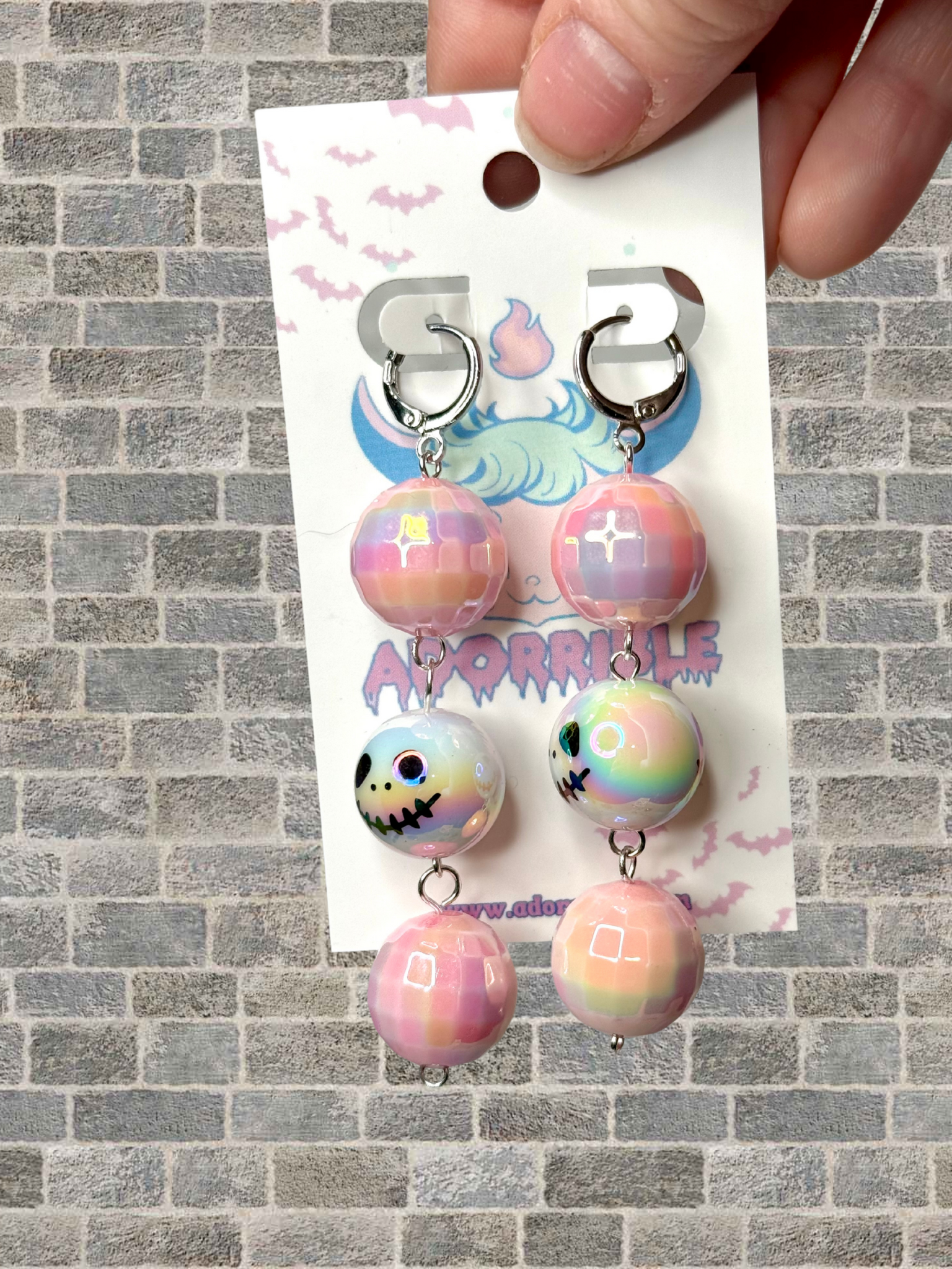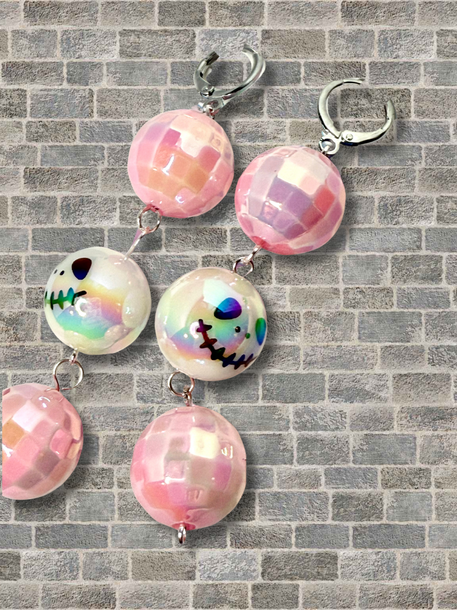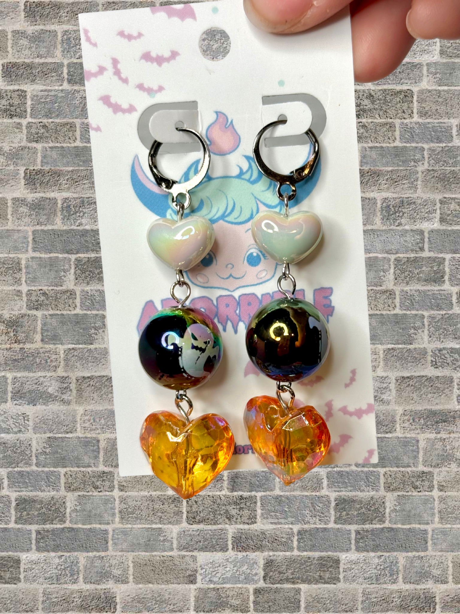 Get ready to add some spook and sparkle to your outfit with our Spooky Sparkly Dangle Earrings! Made with adorable Halloween themed iridescent round beads and fancy faceted heart beads or disco balls, this cute combo of spooky and sweet is sure to make a statement. The lightweight dangle design is both fun and easy to wear, and the lever back closures ensure secure wear. Happy haunting!