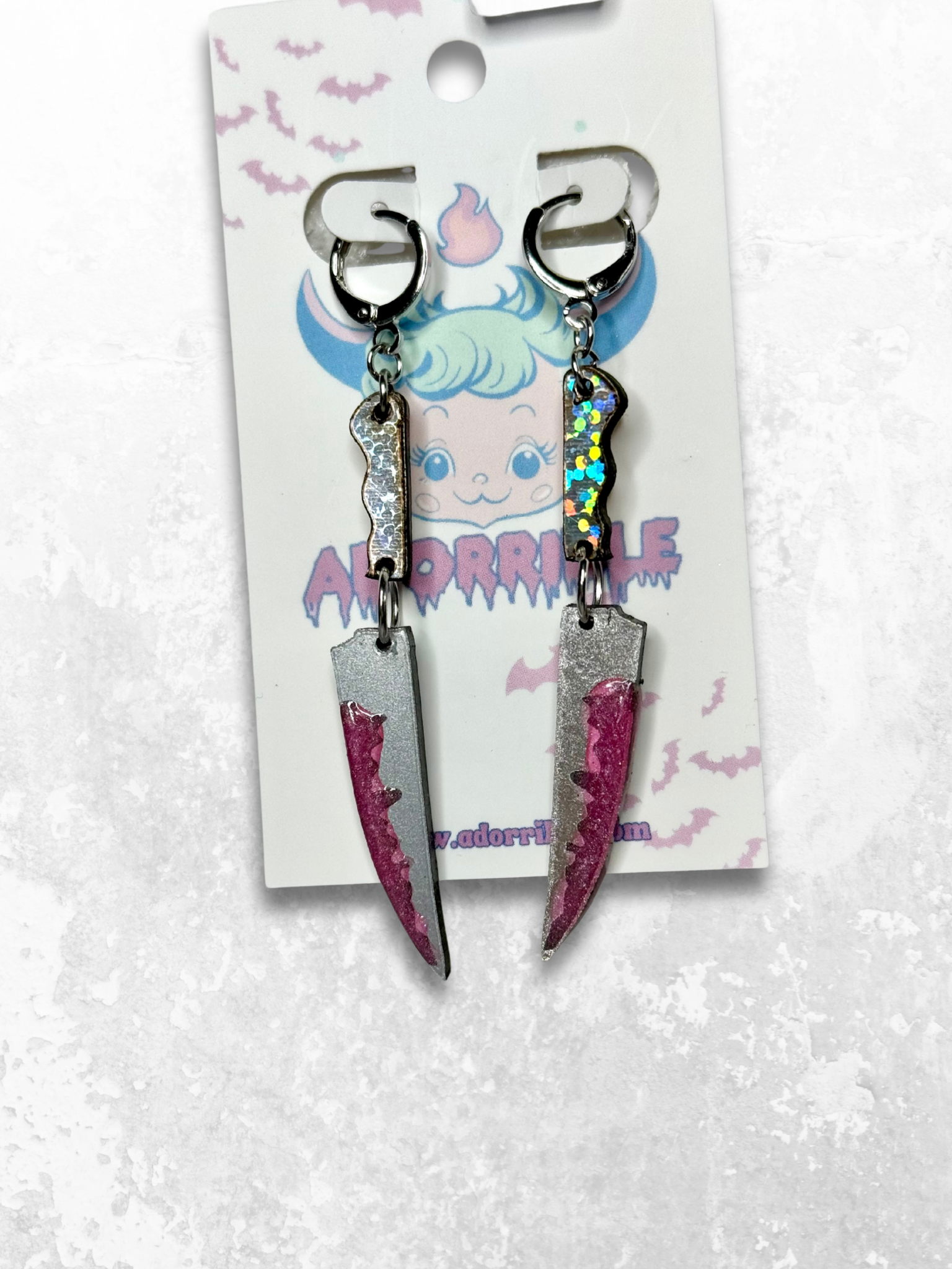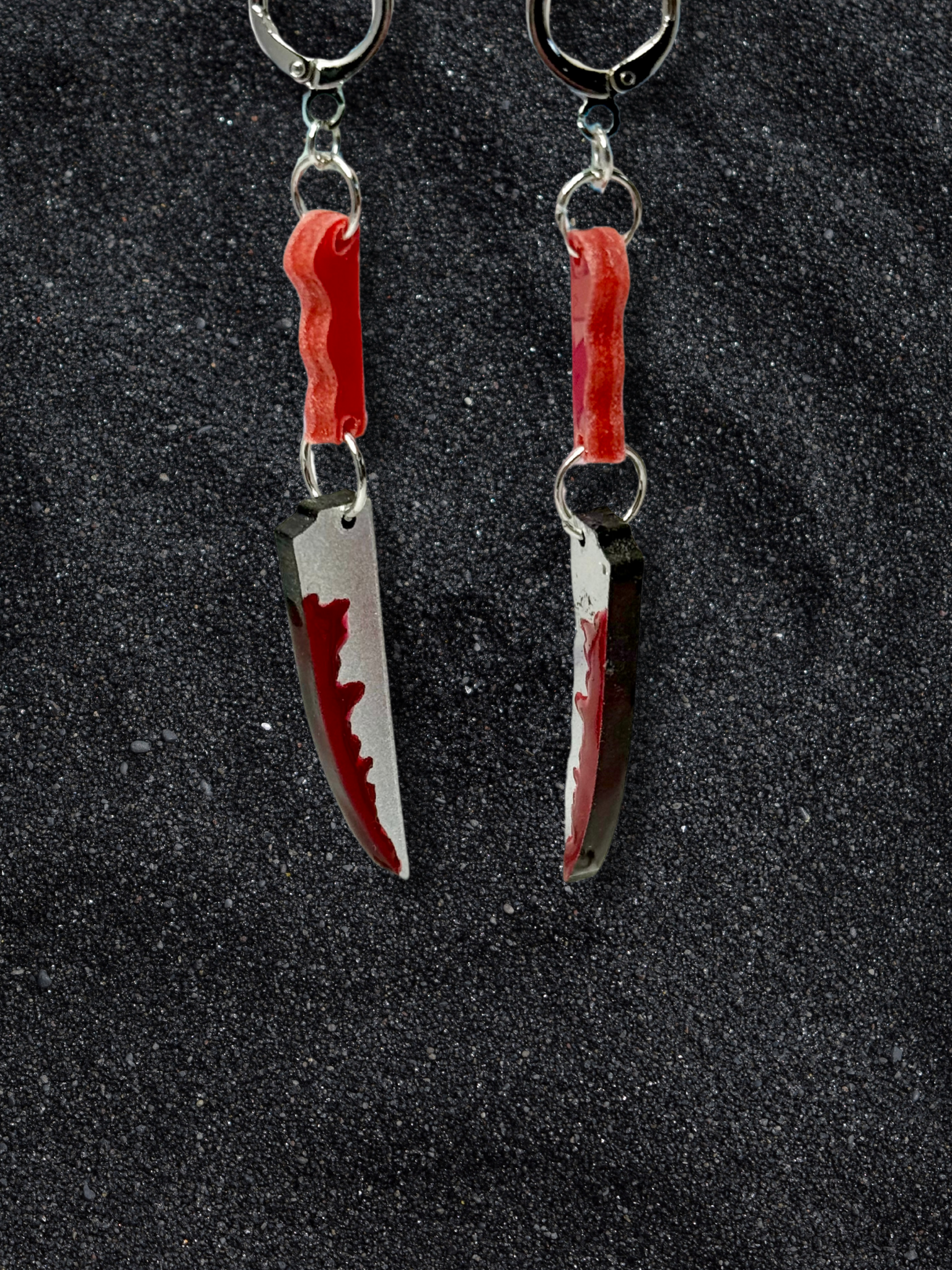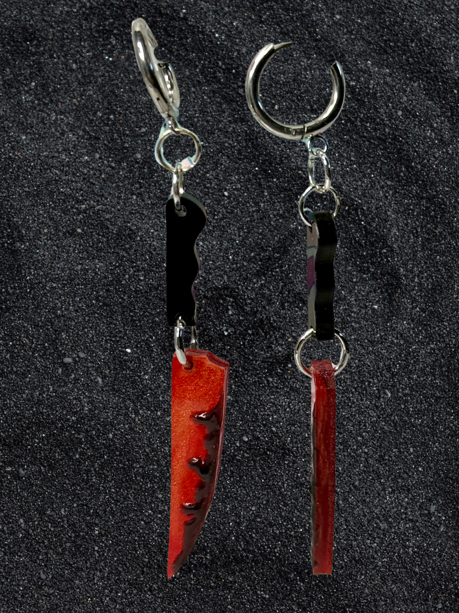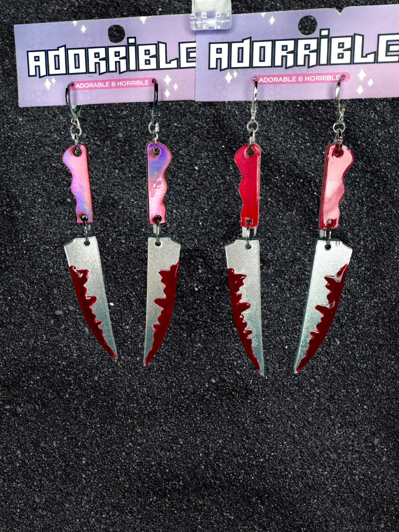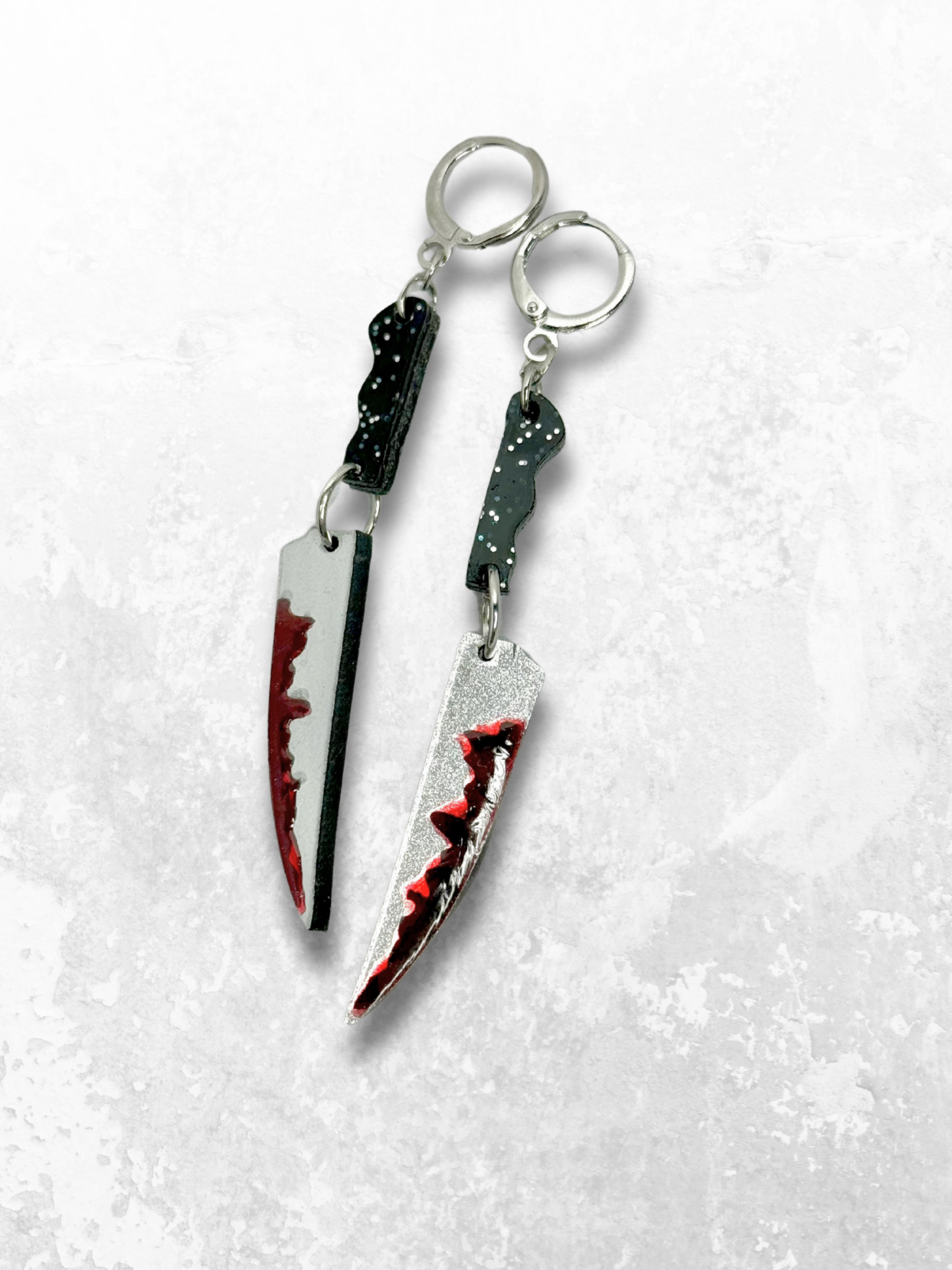 Bring some serious spook to your style with Dangle Daggers! These dangly acrylic daggers are jointed for an extra touch of movement, and secured with lever-back closures. Each blade is dripping with fake blood, making them the perfect gift for horror lovers. So don't wait, grab a pair and slay the fashion game.