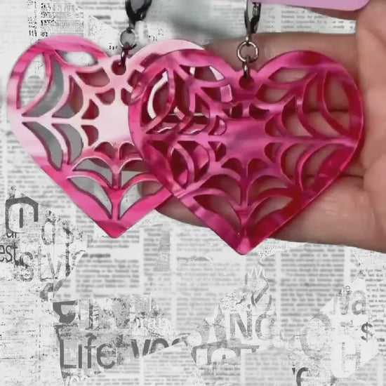 Unleash your inner goth with these lightweight, heart shaped spiderweb earrings. The lever back closures provide security while the unique design adds a fun and quirky touch to any outfit. Guaranteed to turn heads!
